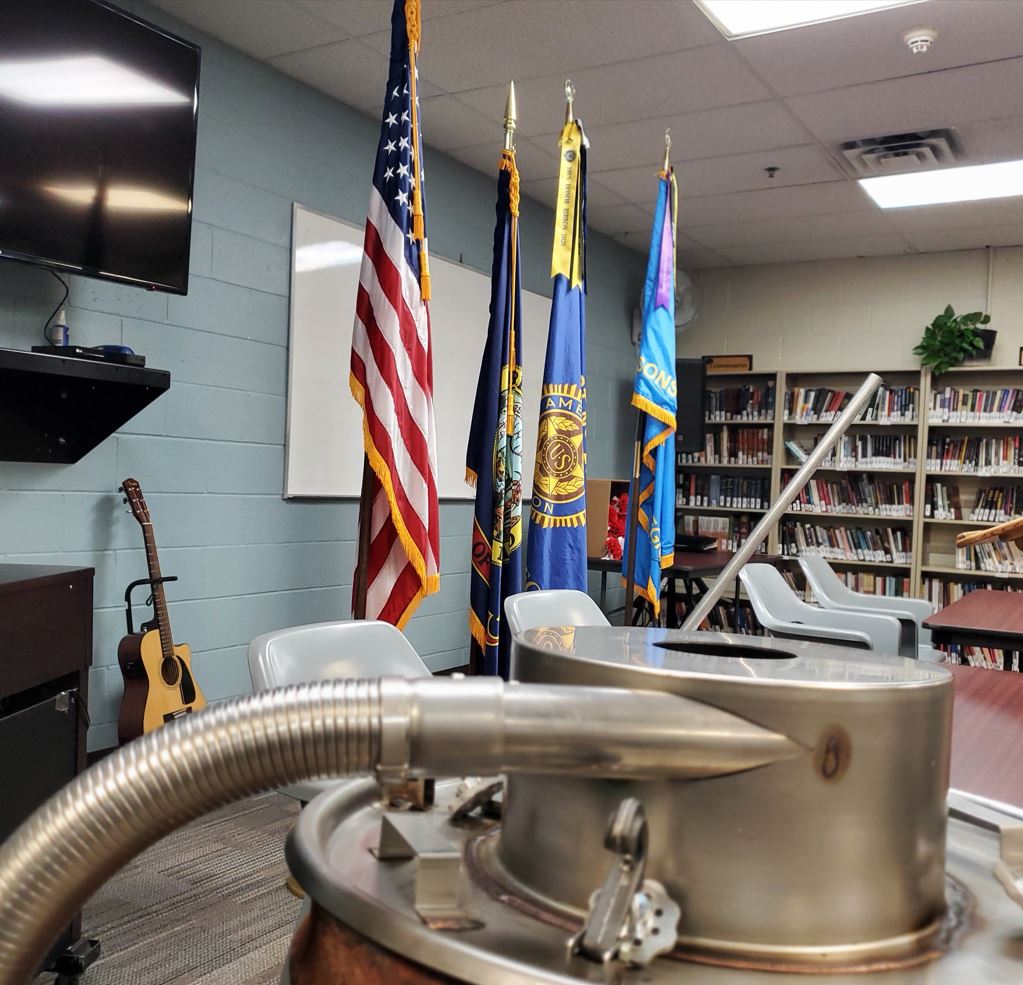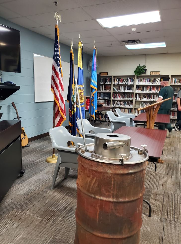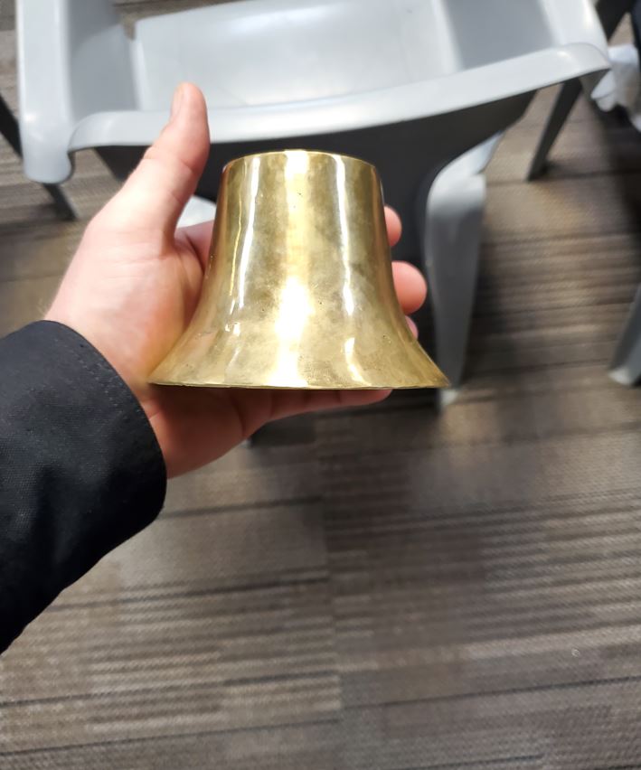 These disposal efforts also include a creative and honorable way of recycling the brass grommets on the unserviceable flags. Post 113 takes those brass grommets and melts them down. That metal is then shaped into bells. The bells have been gifted to the Navy and been placed aboard the USS Idaho and the USS Boise.
